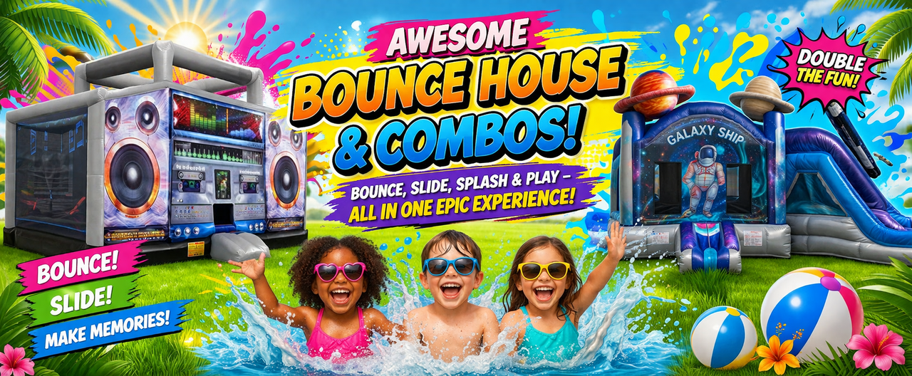 Bounce house rentals, water slides, obstacle courses, tents, tables, and chairs, concession rentals, and more—delivered, set up, and picked up by our team so you can enjoy the party instead of stressing over the details.